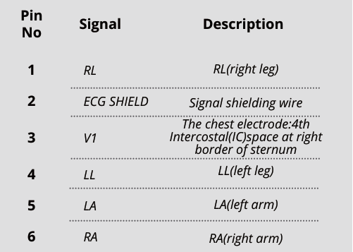 The 3/5-lead ECG lead input interface J4 is defined as follows, and the socket pin spacing is 2.54mm: