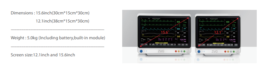 • المعلمات القياسية: SpO₂، ECG، PR، RESP، NIBP، 2 * درجة الحرارة.