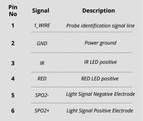 تعريفات دبوس مقبس واجهة spo2 (J2) هي كما يلي: