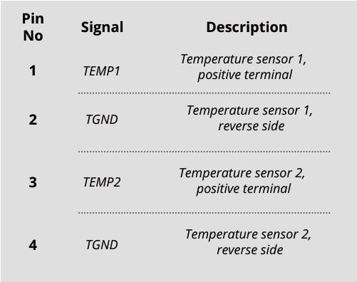 مأخذ واجهة التحقيق درجة الحرارة (J4) دبابيس يتم تعريفها على النحو التالي: