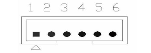 Steckdosenstifte für Strom- und Kommunikationsschnittstellen Definitionsdiagramm (Anmerkung: Die Pins 4 und 6 sind Der gleiche Eingang, die Pins 3 und 5 haben den gleichen Eingang), Zwischen den Buchsen Abstand 2,54 mm: