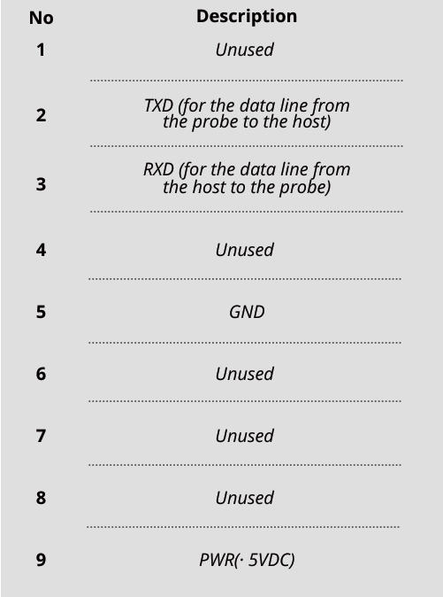 Tomas de interfaz de alimentación y comunicación Utilice el conector hembra estándar DB9, pin El diagrama de definición es el siguiente:
