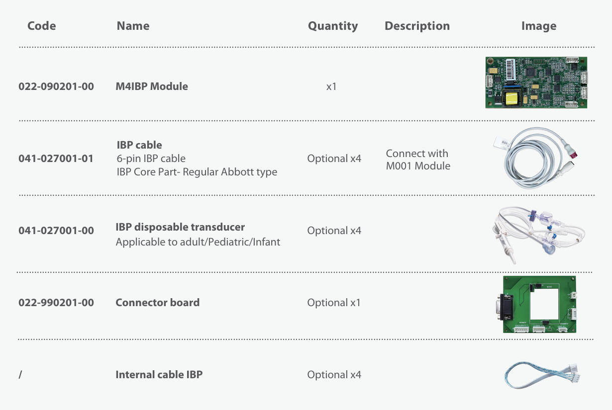 ・Medición independiente de IBP de cuatro canales, incluyendo: presión arterial sistólica, presión arterial diastólica, presión arterial media, cálculo de la frecuencia de pulso