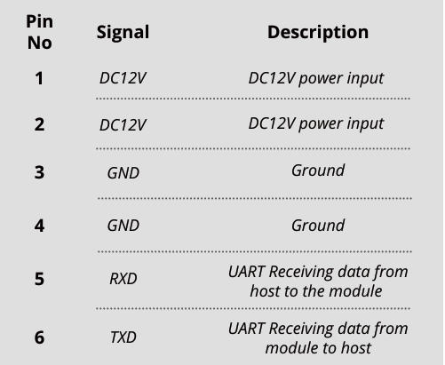 Pin de toma de interfaz de alimentación y comunicación Diagrama de definición (Nota: los pines 1 y 2 son La misma entrada, los pines 3 y 4 son la misma entrada):