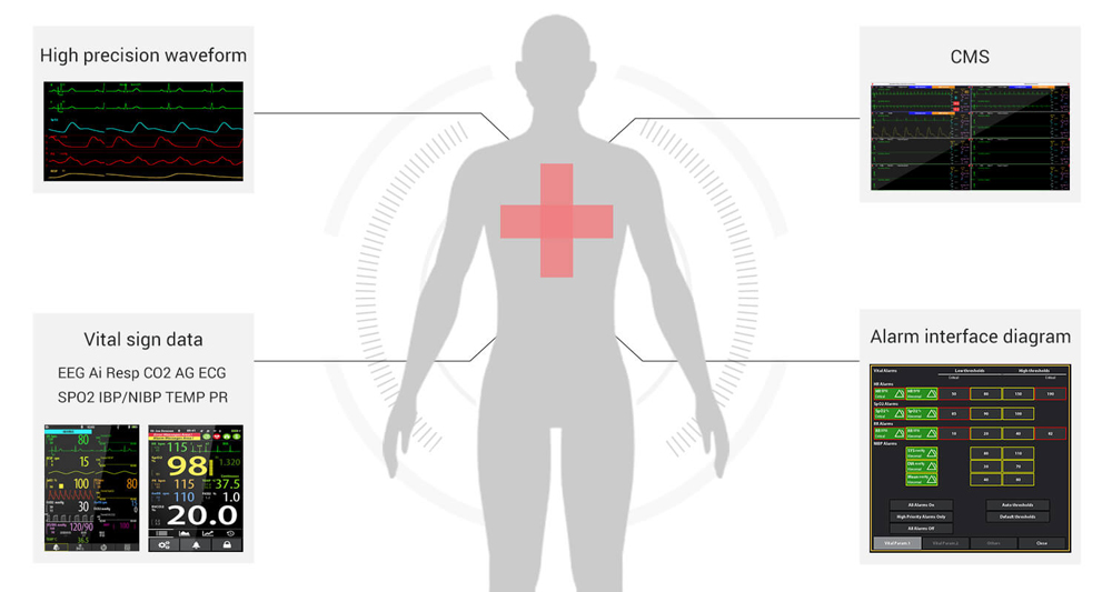 Il centro di gestione dei dati del sistema di monitoraggio centrale fornisce una varietà di interfacce di protocollo dati, che possono comunicare in modo flessibile con il sistema informativo ospedaliero, semplificare il processo di lavoro e assistere i medici nella diagnosi garantendo la sicurezza dei dati del paziente.