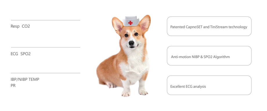 | SpO2. | EtCO2 (flusso principale, flusso laterale, flusso TiniStream), |